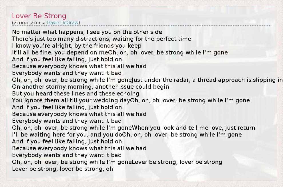 А как ты думаешь, о чем песня "Lover Be Strong" ?