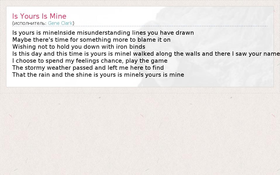 А как ты думаешь, о чем песня "Is Yours Is Mine" ?