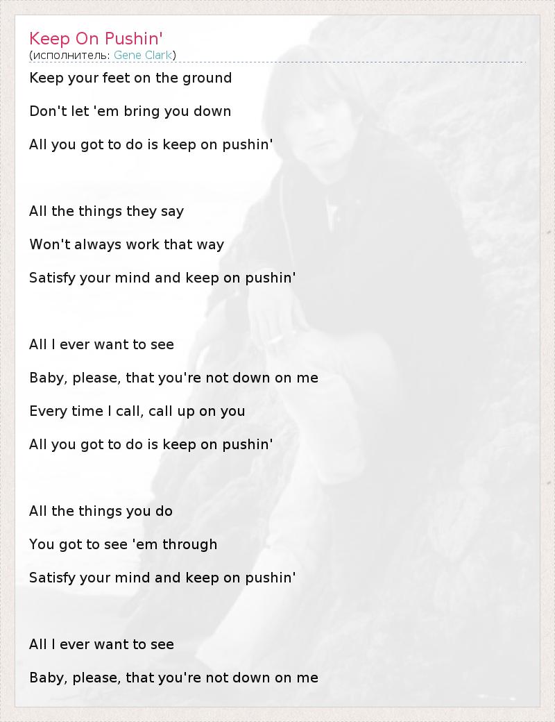 А как ты думаешь, о чем песня "Keep On Pushin'" ?