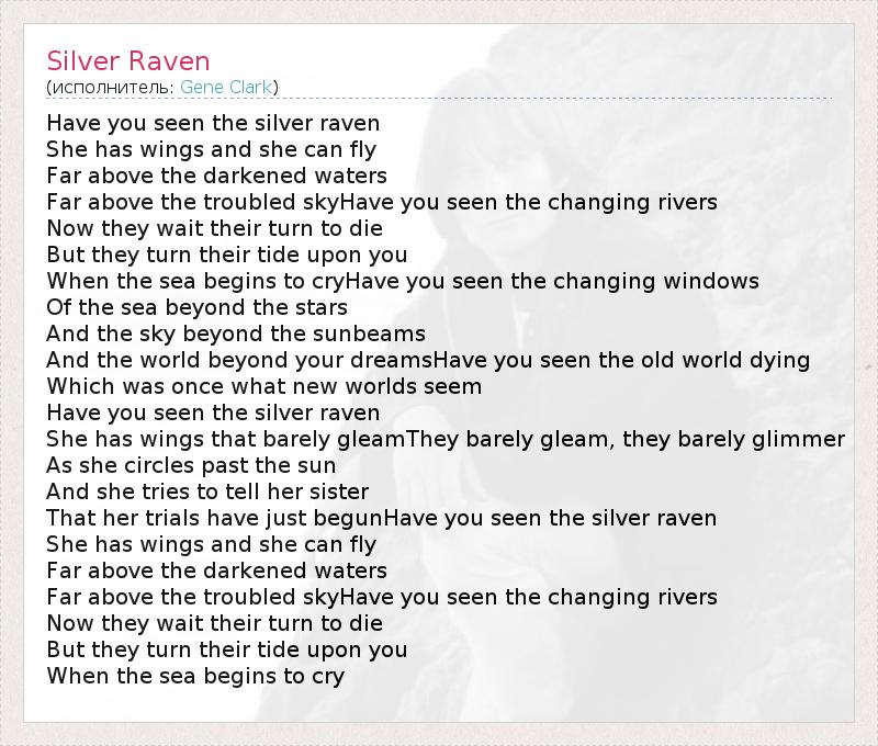 А как ты думаешь, о чем песня "Silver Raven" ?