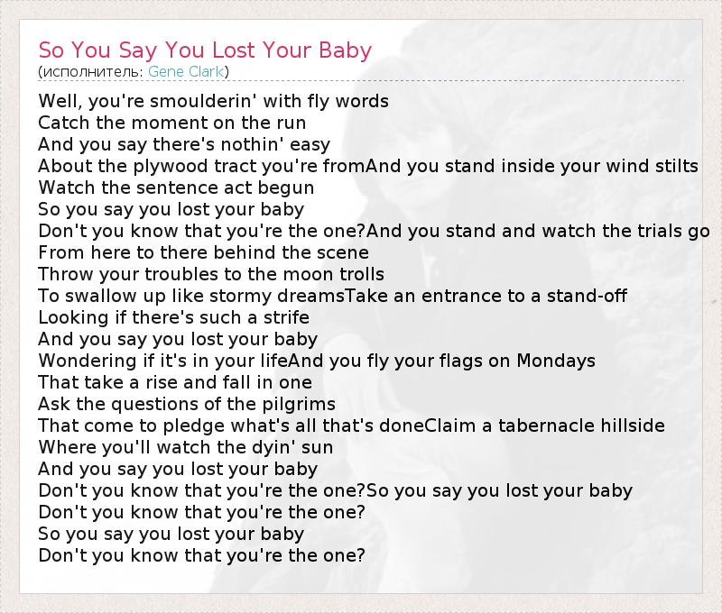 ГлавнаяИсполнителиGene ClarkSo You Say You Lost Your Baby