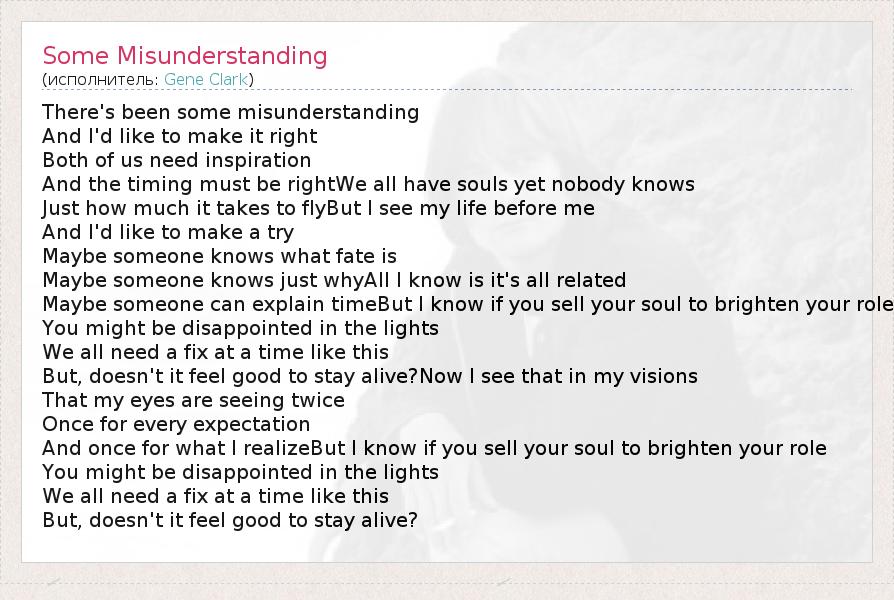 А как ты думаешь, о чем песня "Some Misunderstanding" ?