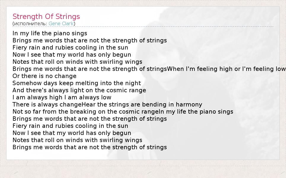 А как ты думаешь, о чем песня "Strength Of Strings" ?
