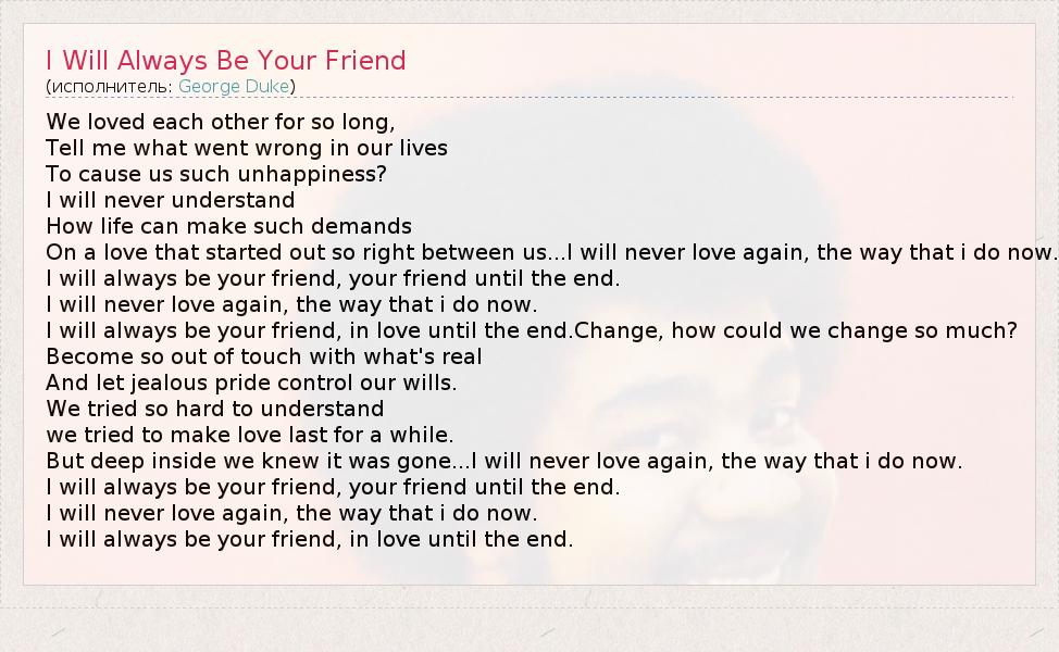 А как ты думаешь, о чем песня "I Will Always Be Your Friend" ?