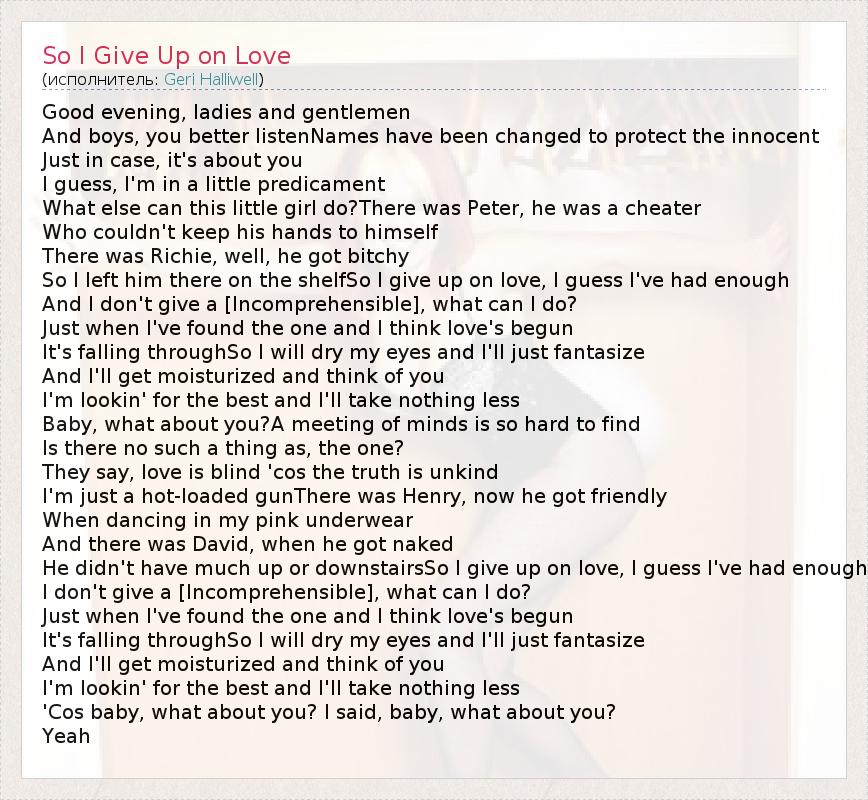 А как ты думаешь, о чем песня "So I Give Up on Love" ?