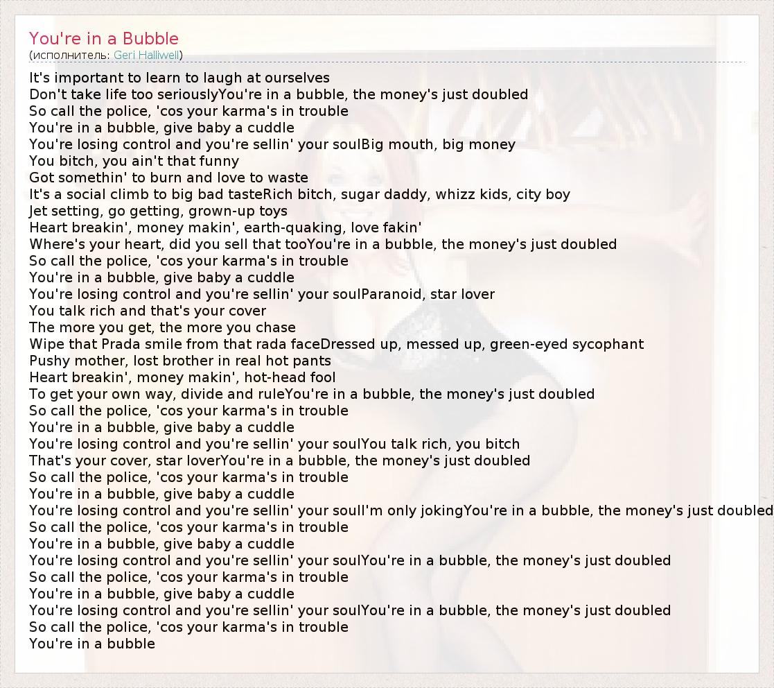 А как ты думаешь, о чем песня "You're in a Bubble" ?
