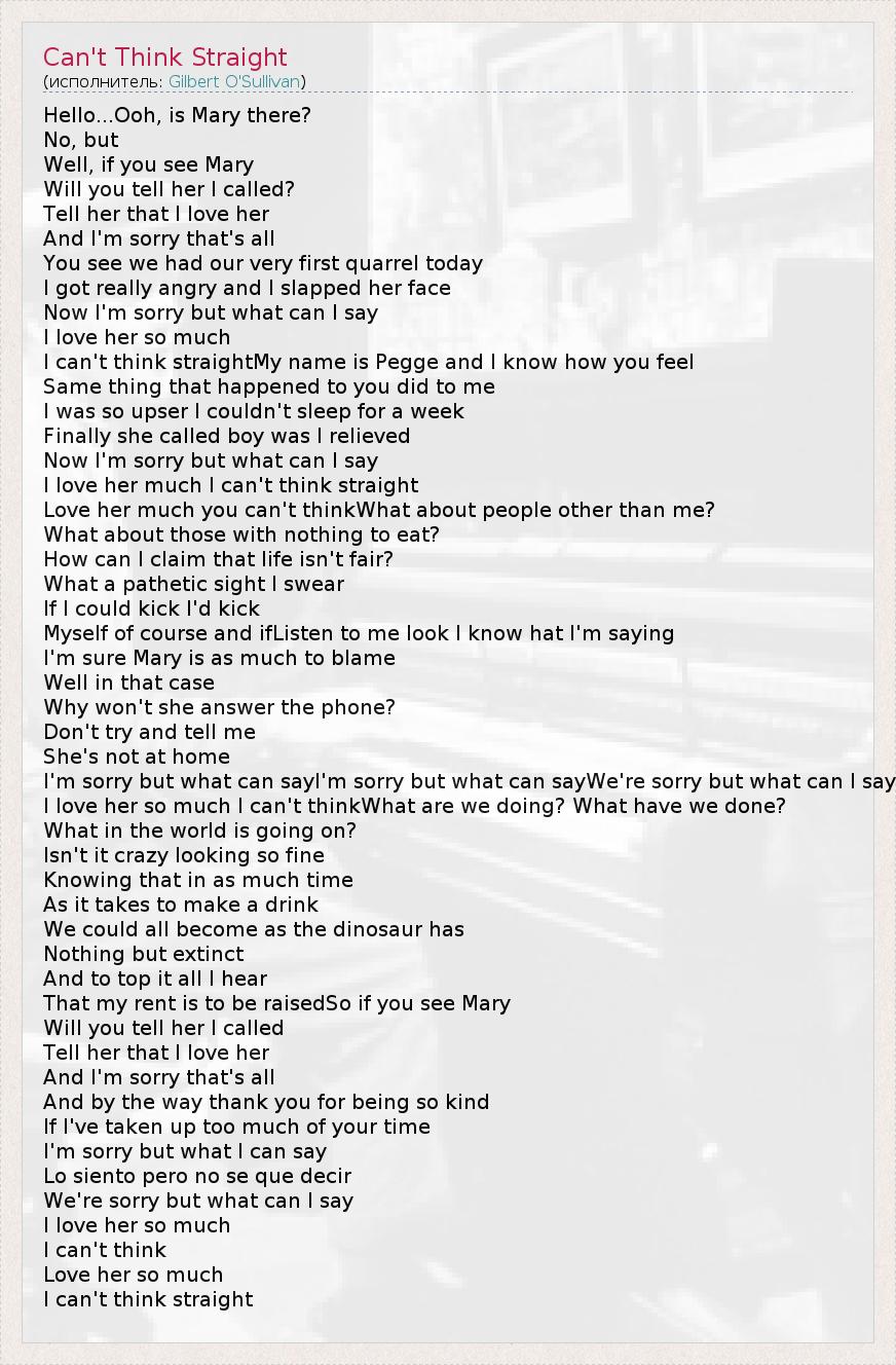 А как ты думаешь, о чем песня "Can't Think Straight" ?