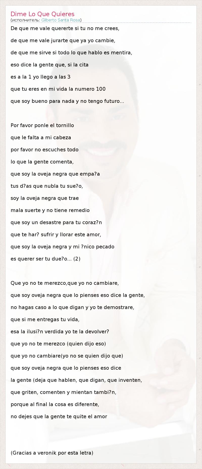 que soy oveja negra que lo pienses eso dice la gente,