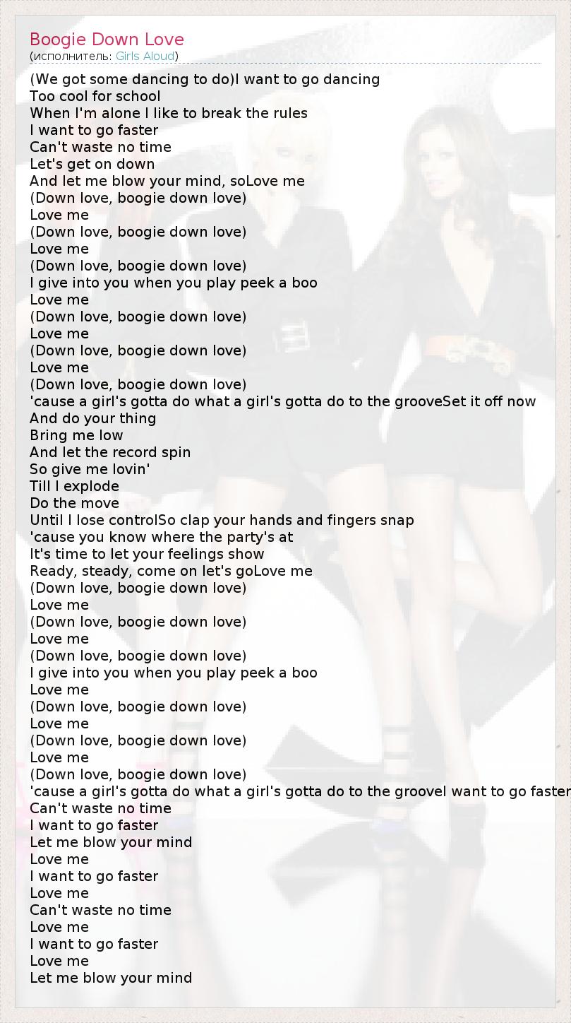 А как ты думаешь, о чем песня "Boogie Down Love" ?