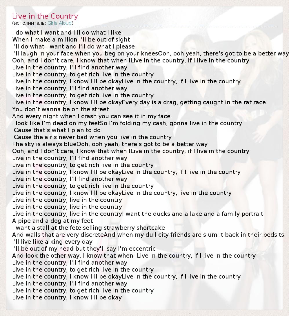 Live in the country, I know I'll be okayLive in the country, if I live in the country