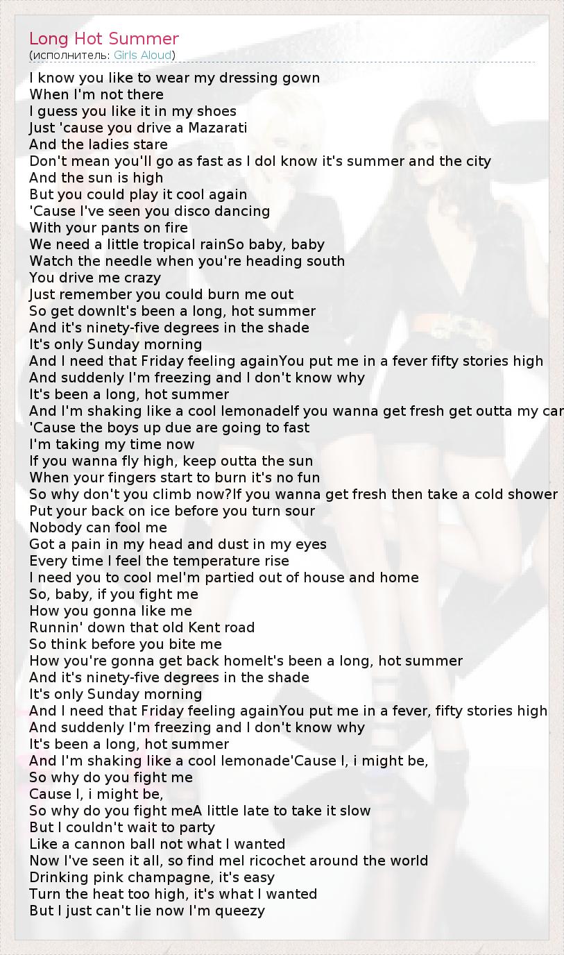 А как ты думаешь, о чем песня "Long Hot Summer" ?