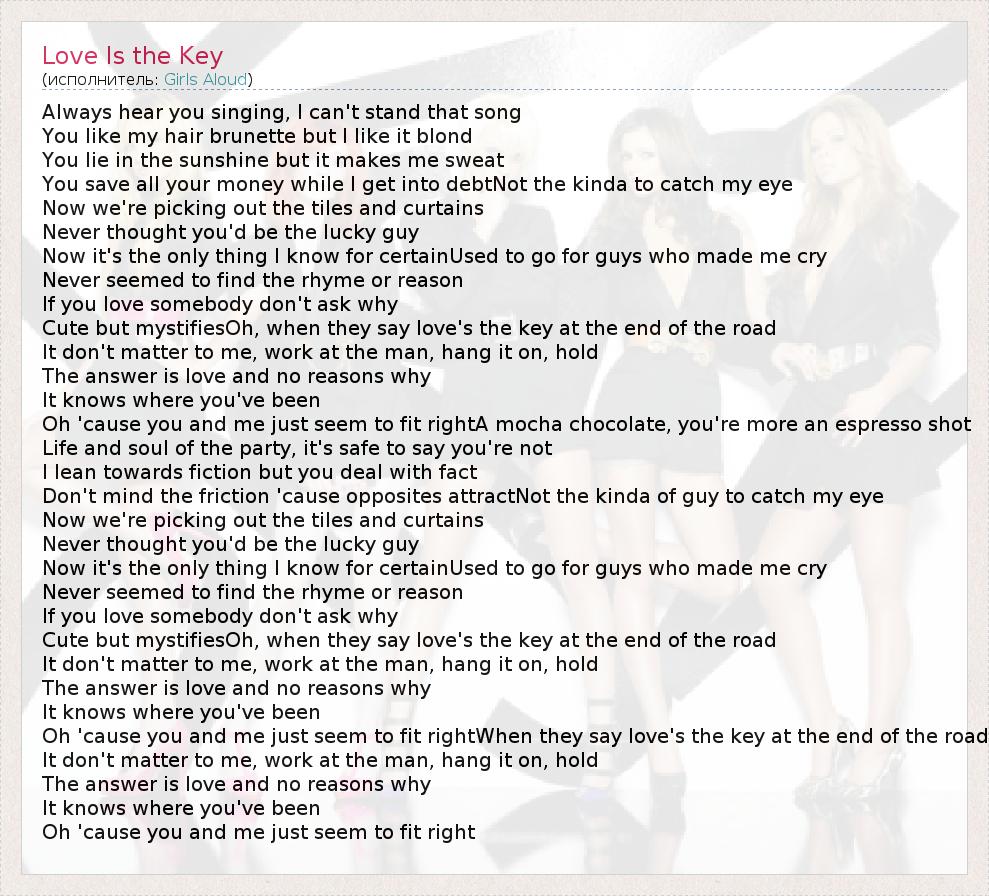 А как ты думаешь, о чем песня "Love Is the Key" ?