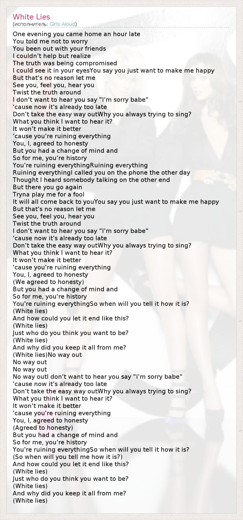 А как ты думаешь, о чем песня "White Lies" ?