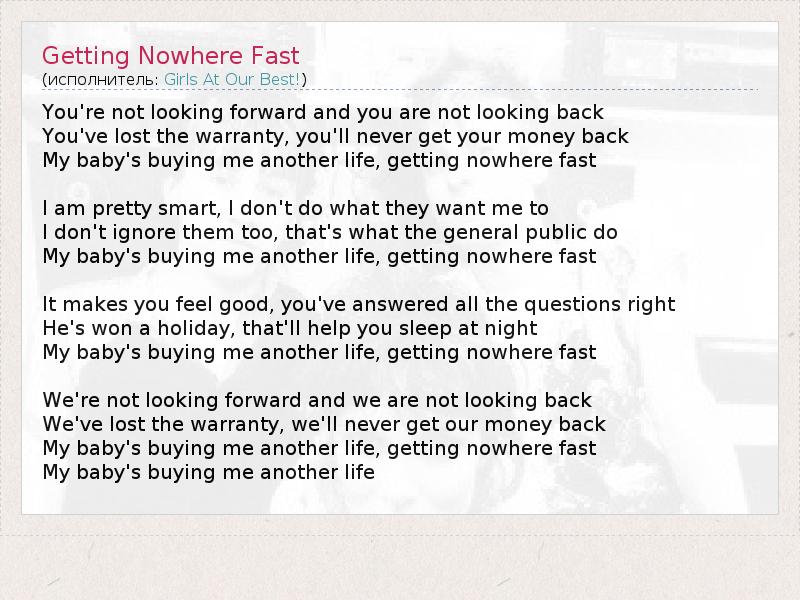 А как ты думаешь, о чем песня "Getting Nowhere Fast" ?