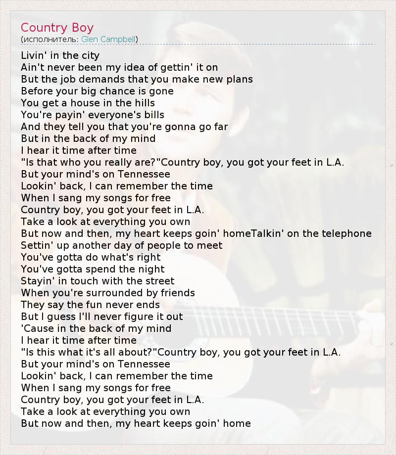А как ты думаешь, о чем песня "Country Boy" ?