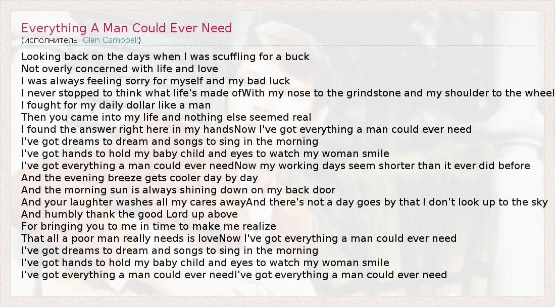 ГлавнаяИсполнителиGlen CampbellEverything A Man Could Ever Need