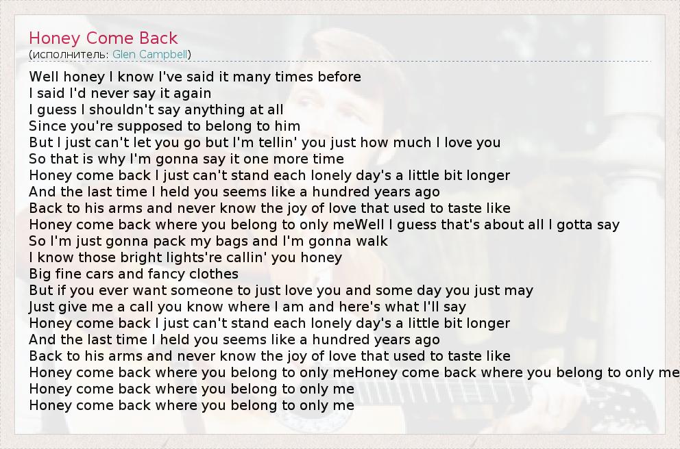 Honey come back where you belong to only meHoney come back where you belong to only me