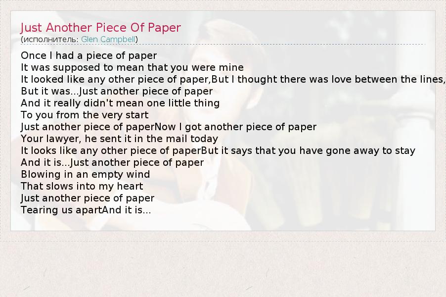 А как ты думаешь, о чем песня "Just Another Piece Of Paper" ?