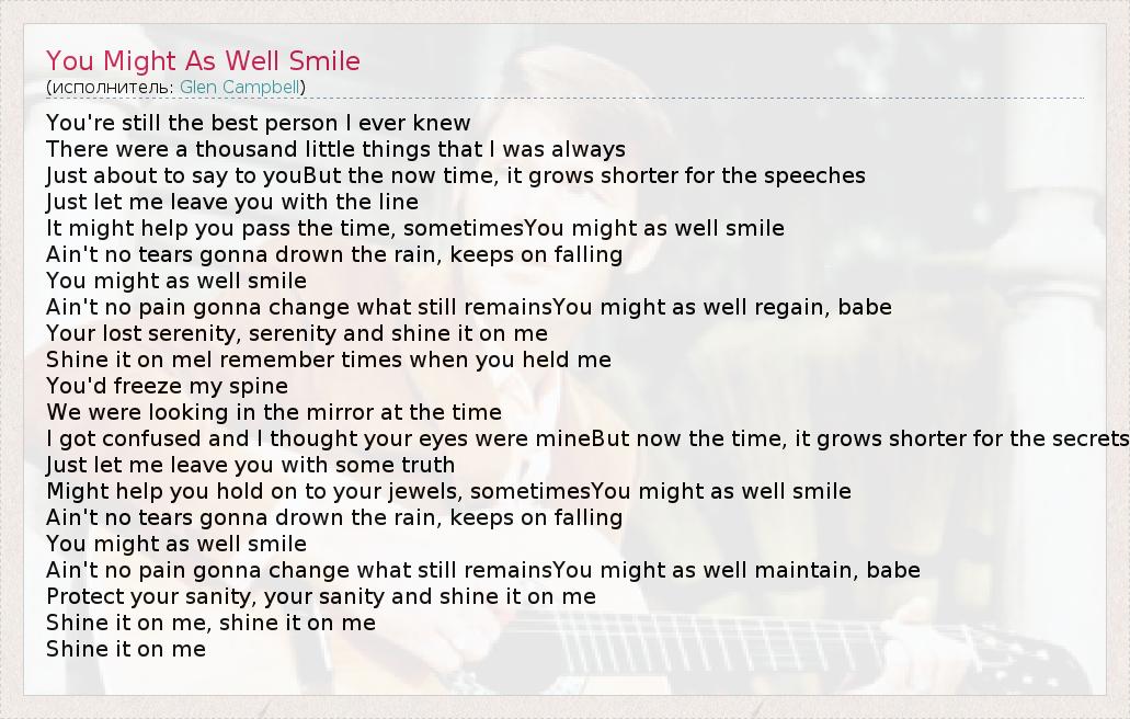А как ты думаешь, о чем песня "You Might As Well Smile" ?