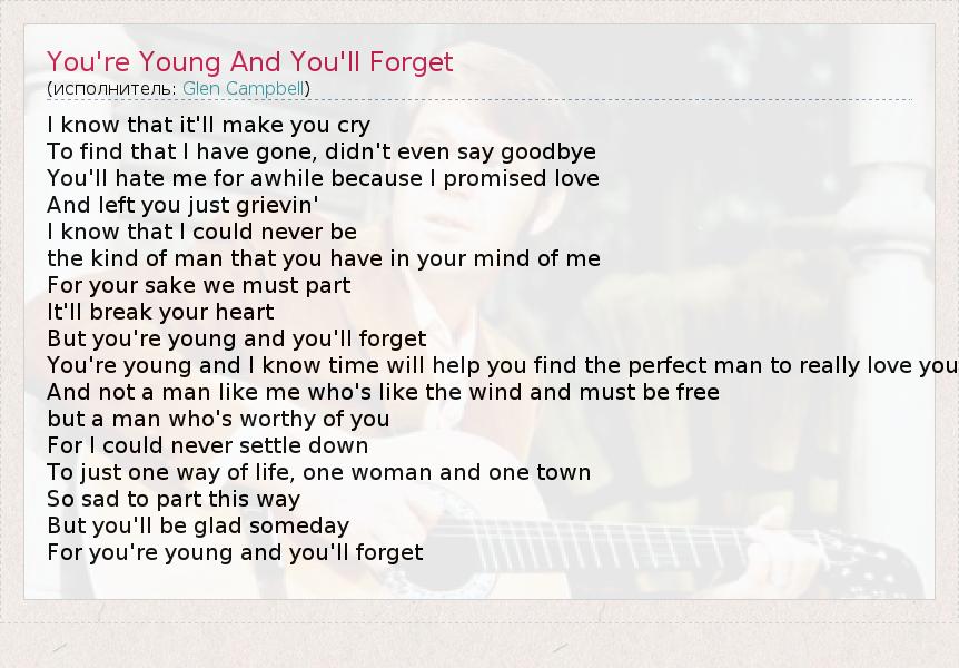 А как ты думаешь, о чем песня "You're Young And You'll Forget" ?