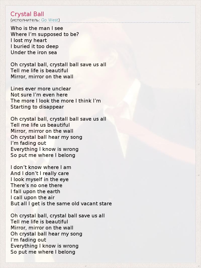 А как ты думаешь, о чем песня "Crystal Ball" ?