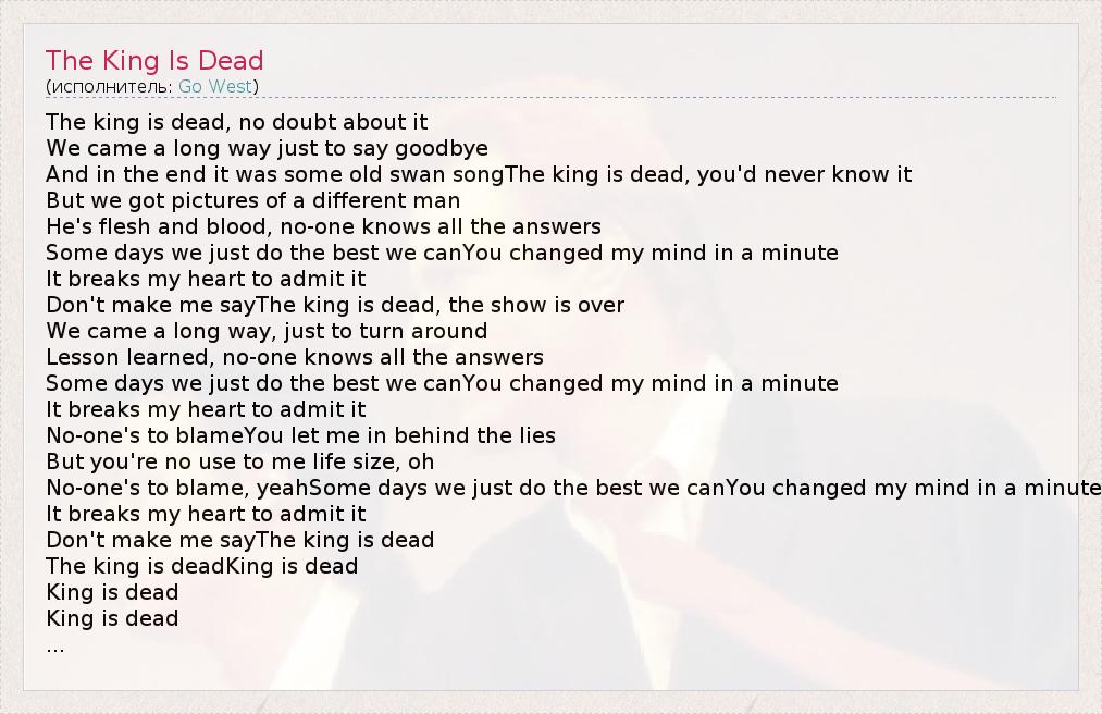 А как ты думаешь, о чем песня "The King Is Dead" ?