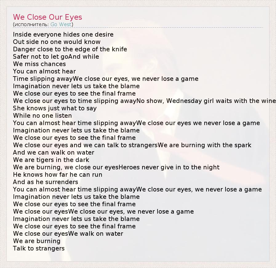 А как ты думаешь, о чем песня "We Close Our Eyes" ?