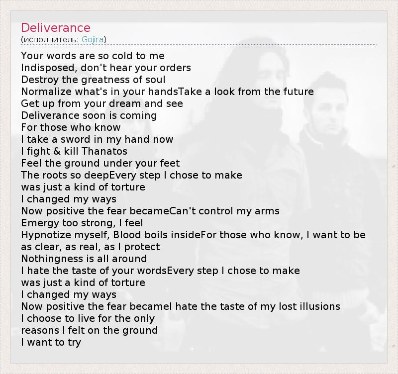 А как ты думаешь, о чем песня "Deliverance" ?