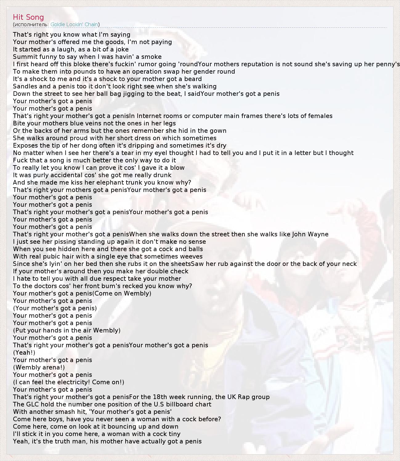 That's right your mother's got a penisFor the 18th week running, the UK Rap group