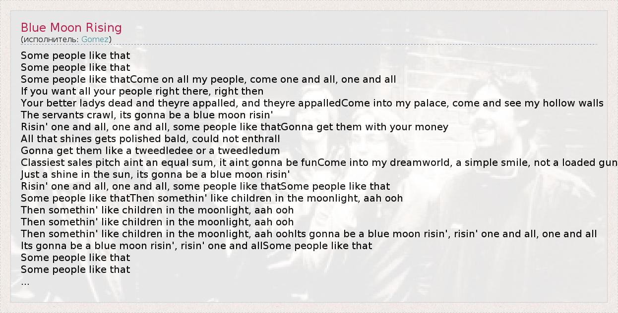 А как ты думаешь, о чем песня "Blue Moon Rising" ?