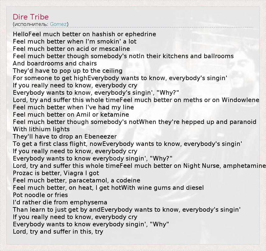 А как ты думаешь, о чем песня "Dire Tribe" ?