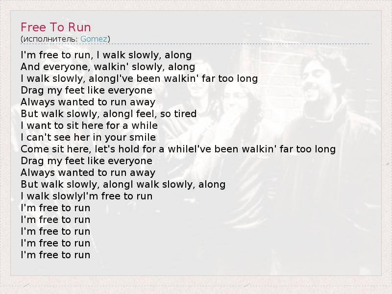 I'm free to run, I walk slowly, along
