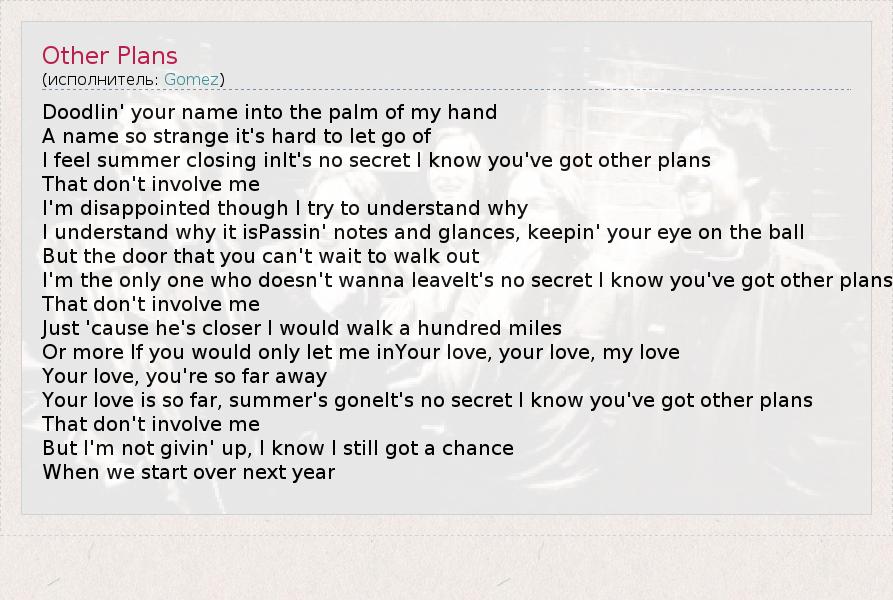 Your love is so far, summer's goneIt's no secret I know you've got other plans
