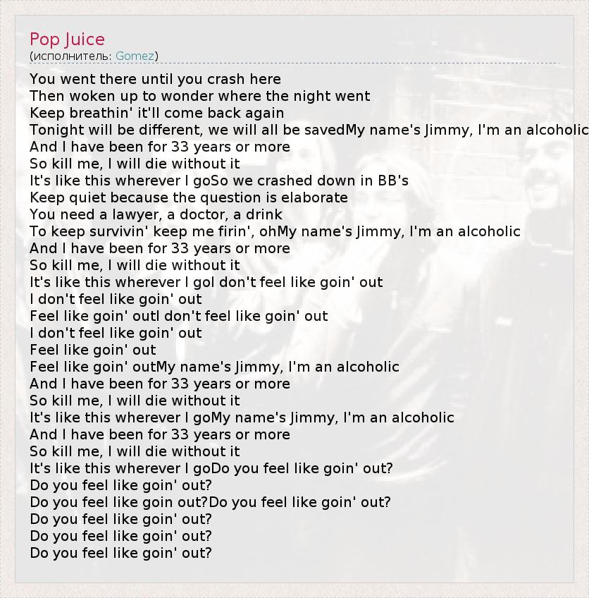 Feel like goin' outMy name's Jimmy, I'm an alcoholic