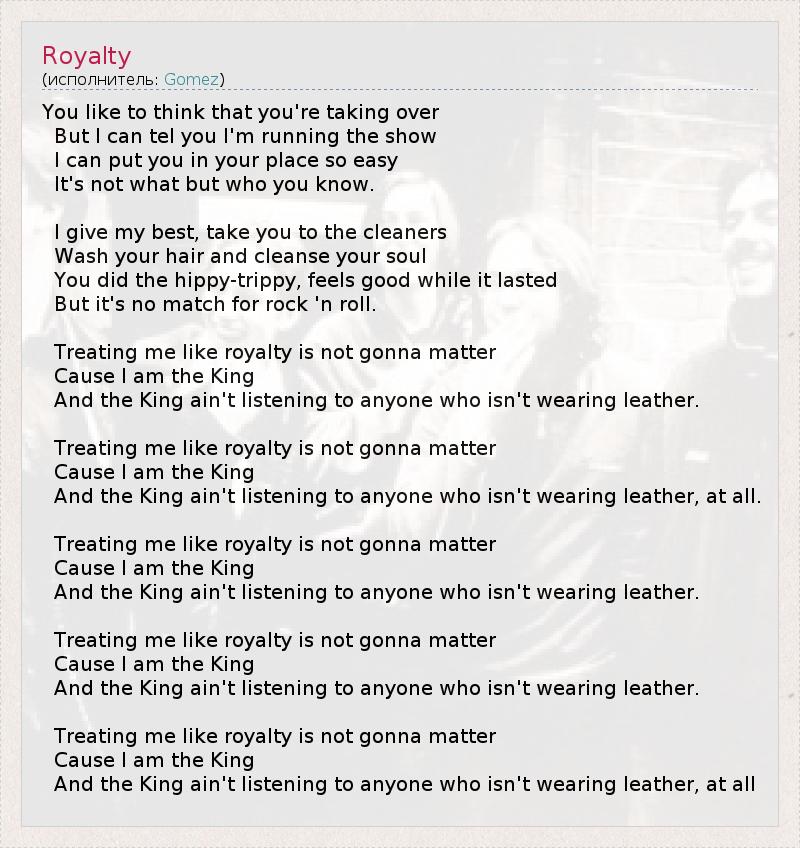 А как ты думаешь, о чем песня "Royalty" ?