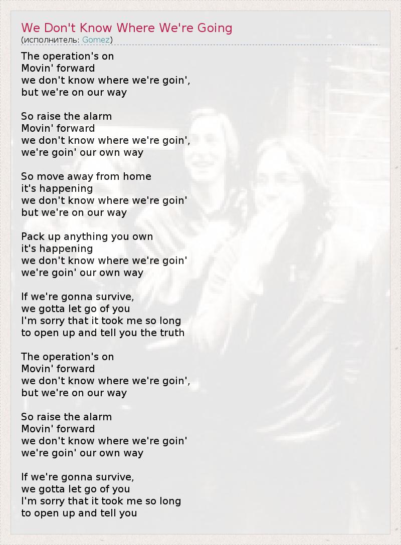 А как ты думаешь, о чем песня "We Don't Know Where We're Going" ?