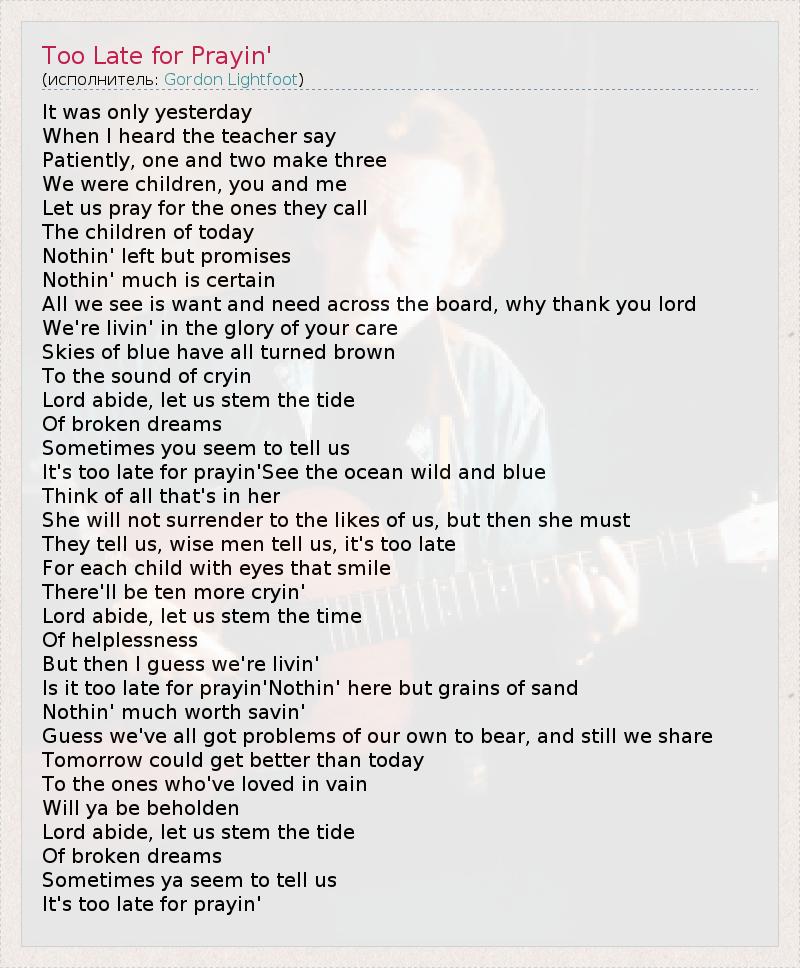 А как ты думаешь, о чем песня "Too Late for Prayin'" ?