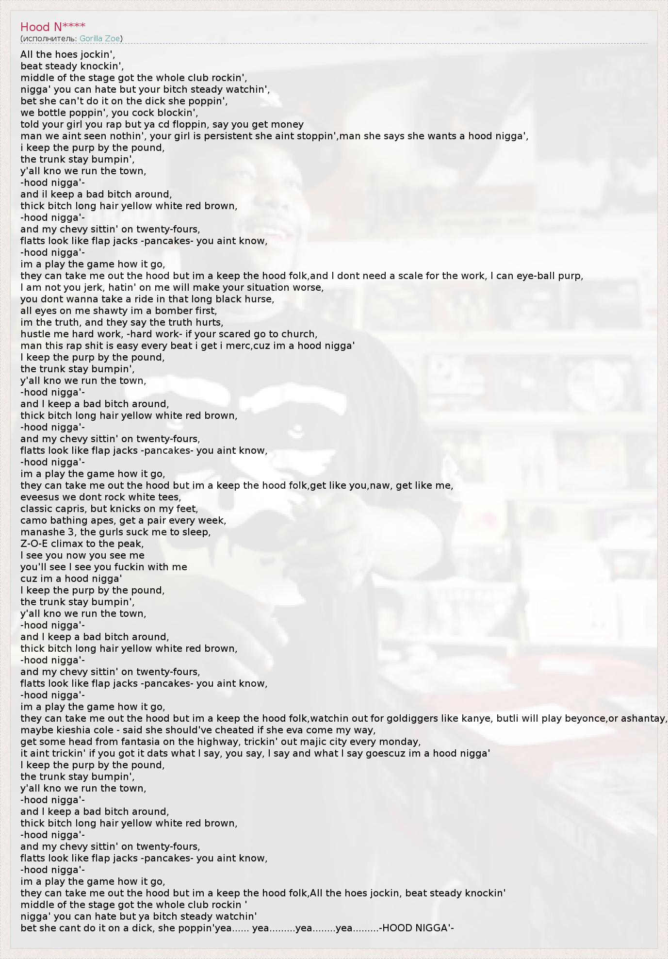 Это интересно:Gorilla Zoe - это рэппер из Атланты, который записывался как участник группы Boyz N Da Hood (где он заменил Young Jeezy) и как сольный артист.