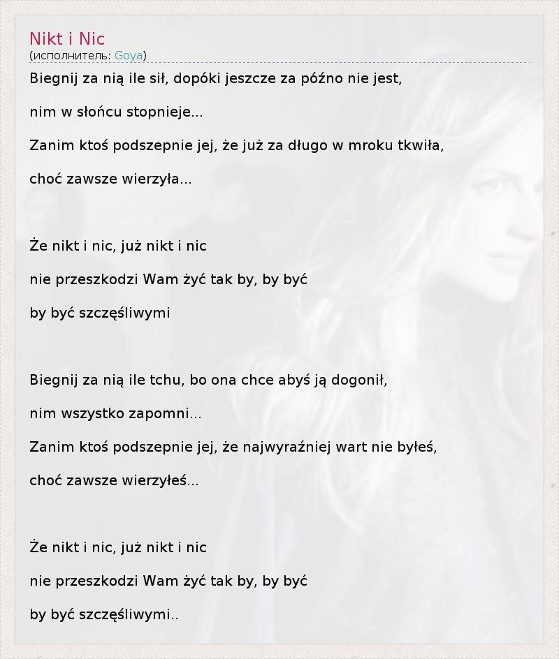 А как ты думаешь, о чем песня "Nikt i Nic" ?