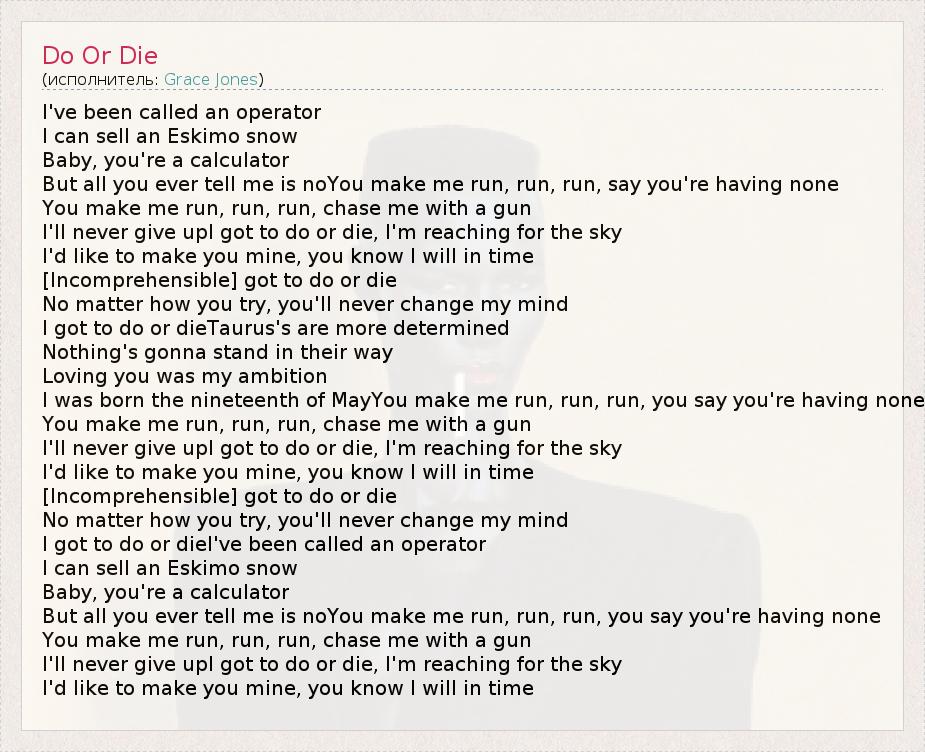 А как ты думаешь, о чем песня "Do Or Die" ?