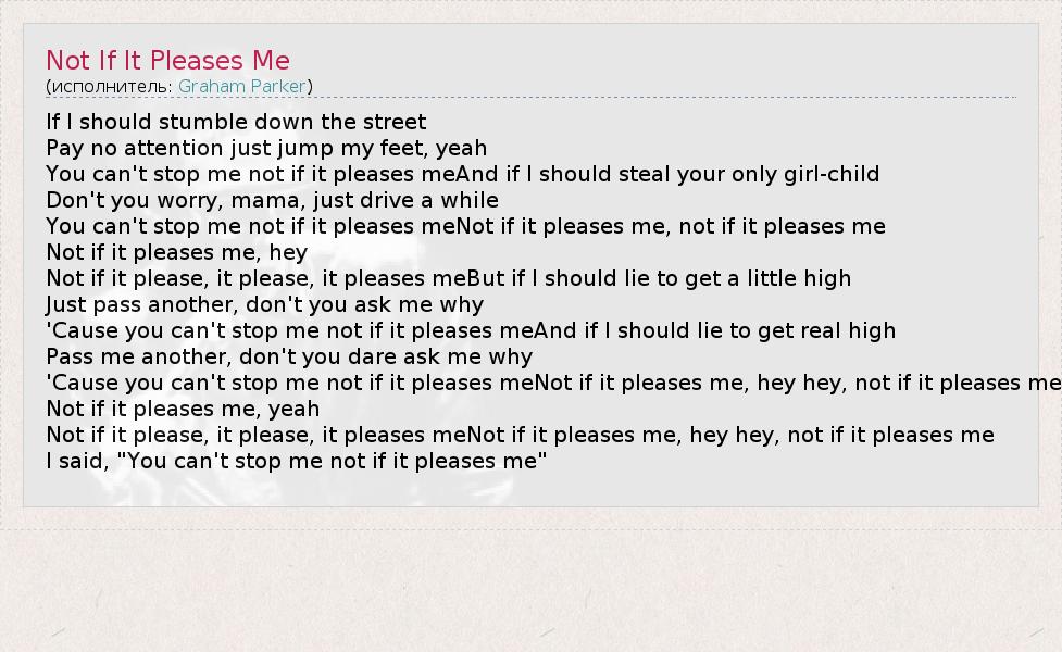 А как ты думаешь, о чем песня "Not If It Pleases Me" ?