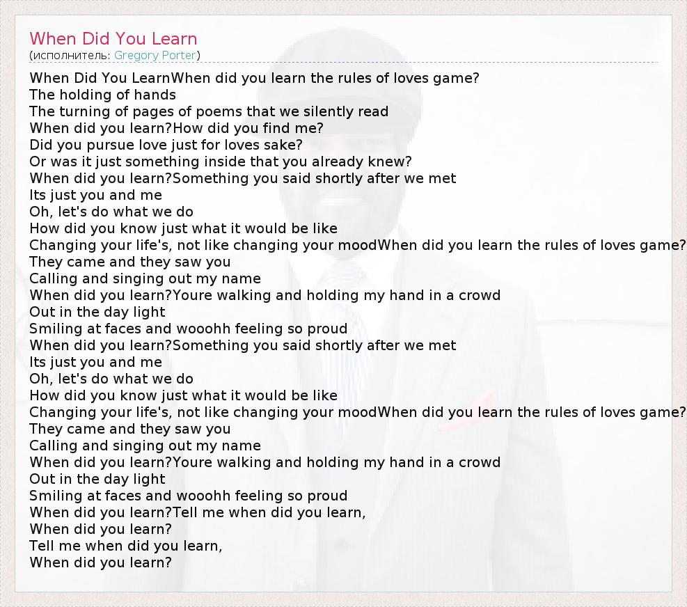 А как ты думаешь, о чем песня "When Did You Learn" ?