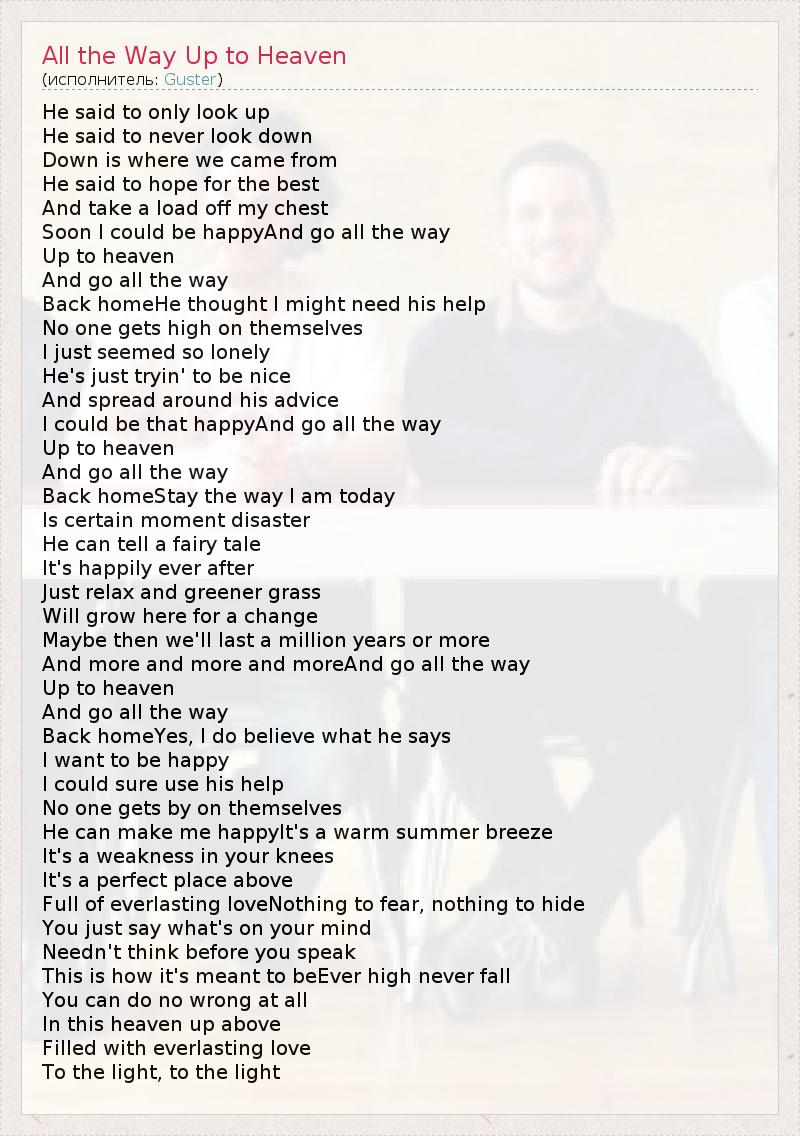 ГлавнаяИсполнителиGusterAll the Way Up to Heaven