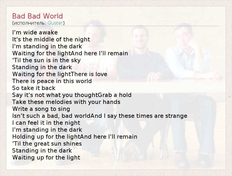 А как ты думаешь, о чем песня "Bad Bad World" ?