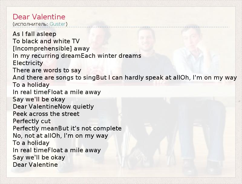 А как ты думаешь, о чем песня "Dear Valentine" ?