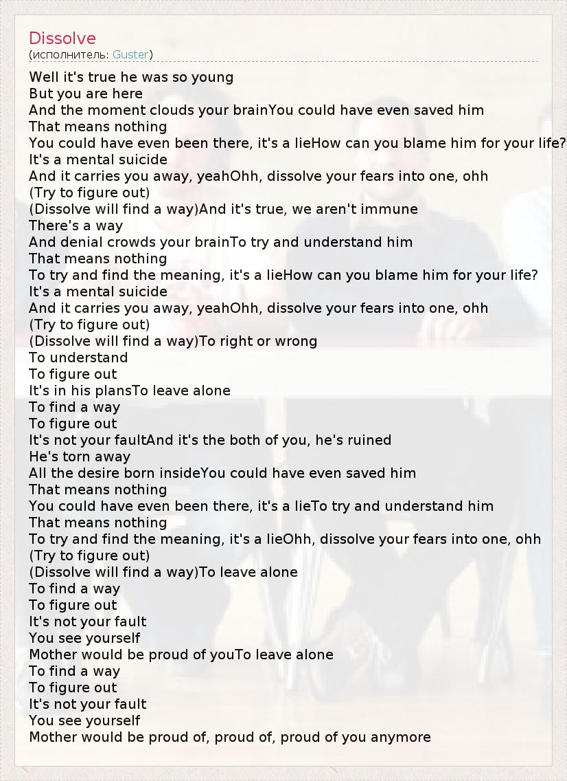 To try and find the meaning, it's a lieOhh, dissolve your fears into one, ohh