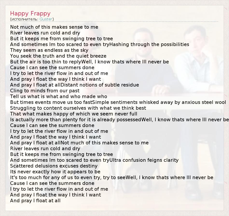 А как ты думаешь, о чем песня "Happy Frappy" ?