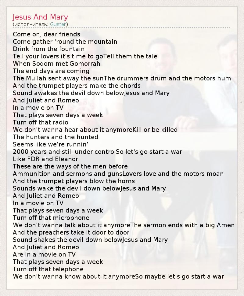 А как ты думаешь, о чем песня "Jesus And Mary" ?