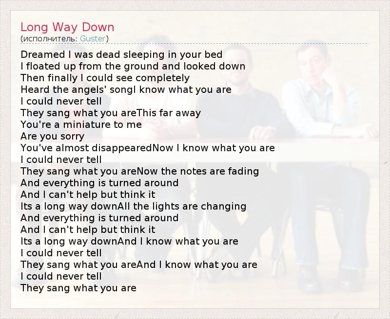 А как ты думаешь, о чем песня "Long Way Down" ?