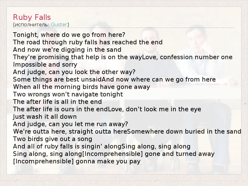 А как ты думаешь, о чем песня "Ruby Falls" ?